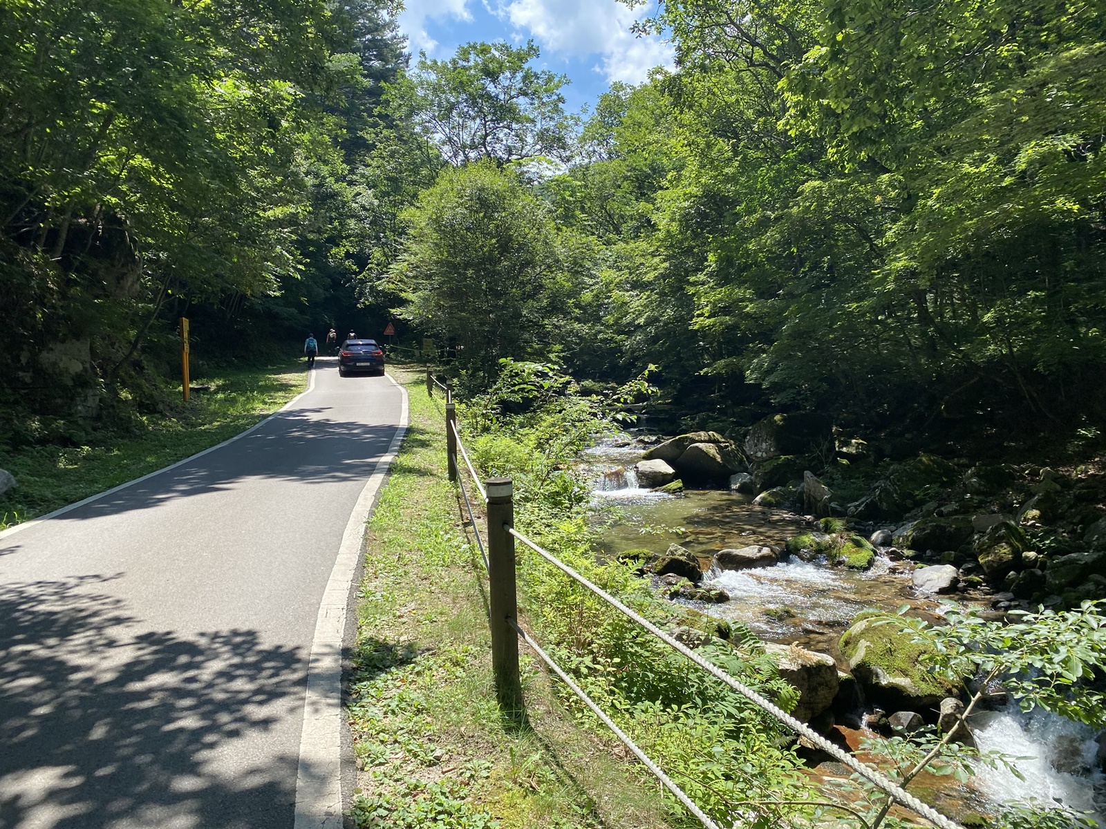 우렁차게 흐르는 계곡 물소리만 들으면 시원한 길인데 바람 한점 없다 보니 힘이 드네