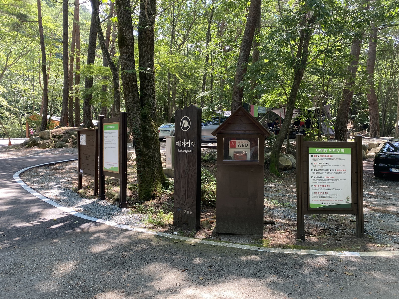 휴양림 진입로도 벌써 휴가 차가 양방향 좁은길을 복잡하게 다녀 버스올라가는데도 좁은길을 어렵게 올라가네