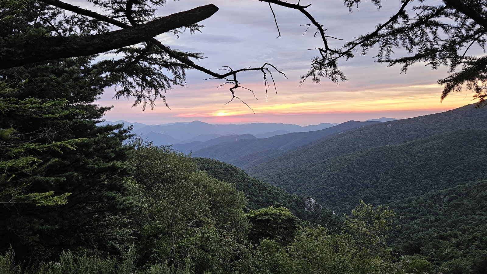 이런 새벽이라 살랑 살랑 부는 바람에 속도를 올려 정상에 도착할 무렵 아침 일출이 시작되네 10분만 빨리