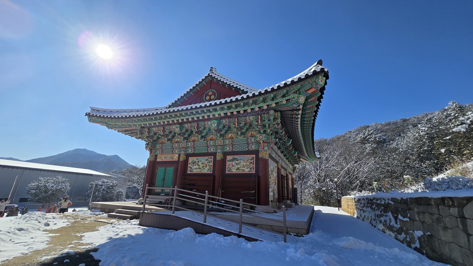 도착이란 말에 버스에서 하차하니 찬 바람이 피부에 닿는 것이 예사롭지 않네 많은 눈은 아니지만 바닥을 덮을 정도의